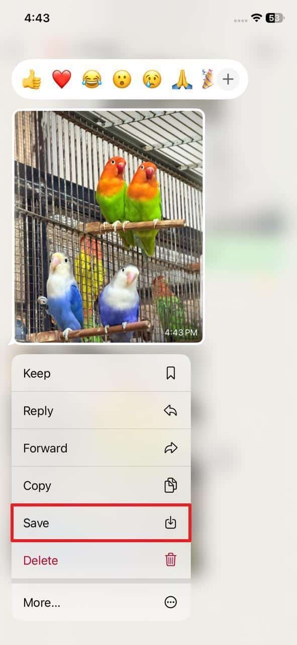 Step 2. When you receive the file on your iPhone, long-press on it and opt for “Save.”