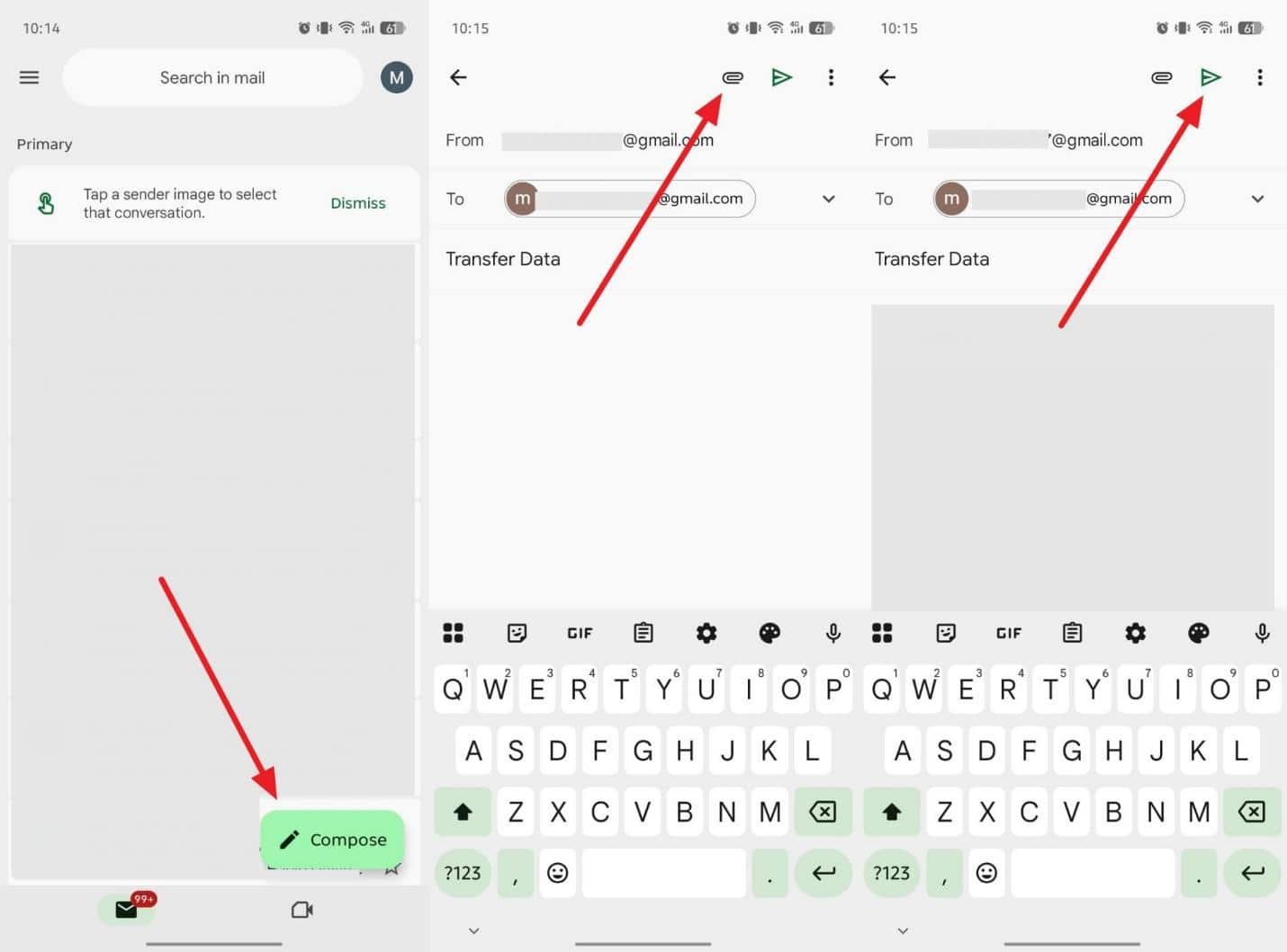 You can also use an email platform like Gmail to send small files manually. It securely supports attachments, including photos, documents, videos, and small media files. This also keeps records of transferred files, making organization easier for future reference. Therefore, you can go through the following steps to send your desired data between phones via Gmail: