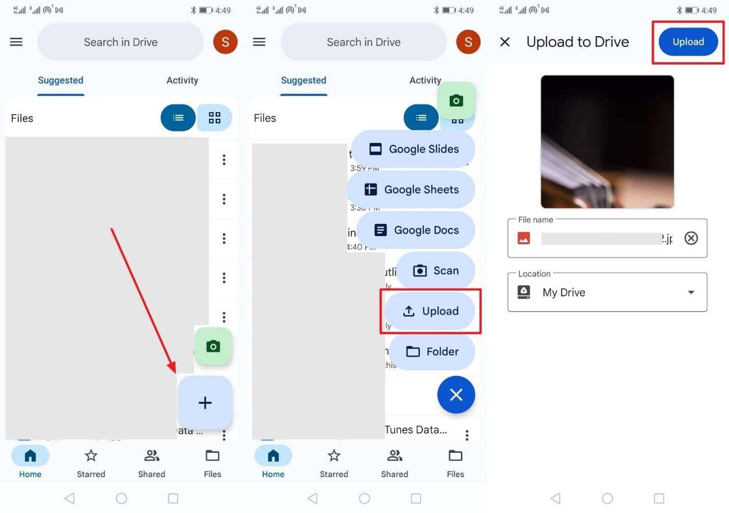 Step 1. As you press the “+” button, tap “Upload” to choose your desired file and hit the “Upload” button.